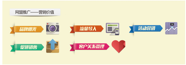 因此,使用網(wǎng)盟推廣將擴(kuò)展搜索推廣僅在網(wǎng)民搜索階段的影響力,緩解搜索競(jìng)爭(zhēng)壓力,主動(dòng)在 “潛在網(wǎng)民”瀏覽網(wǎng)絡(luò)過程中,全面實(shí)施更大范圍、更長(zhǎng)時(shí)間的展現(xiàn)影響,有效幫助企業(yè)提升整體 銷售成績(jī)和品牌認(rèn)知度。