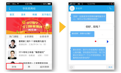 通過直達號提供的服務(wù)導航欄:咨詢,電話,評價,分享等交互組件實現(xiàn)與用戶的有效互動。全面了解和快速響應(yīng)客戶的需求,并提供及時精準的服務(wù),從而提升訂單量。