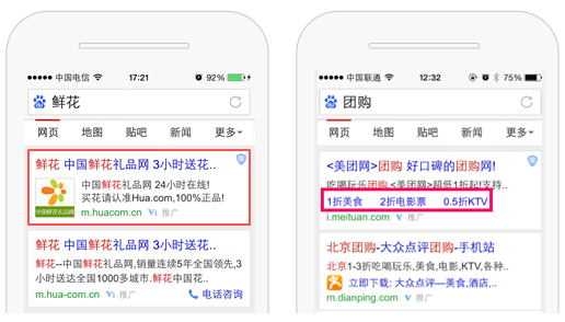 常規(guī)搜索推廣:兩步操作,客戶會有流失 直達號:一步直達,獲得更多用戶